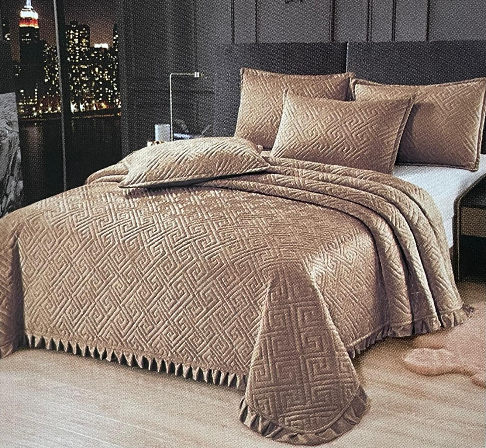 Cuvertura pat dublu, 3 piese, Catifea Matlasata cu volanas