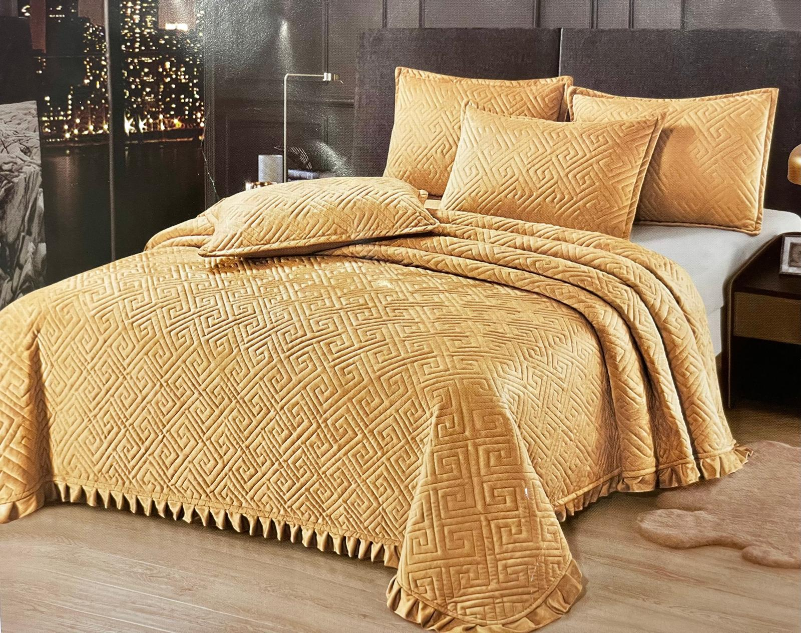 Cuvertura cu volane pat dublu 3 piese, Catifea matlasata, Super Elegant Pucioasa