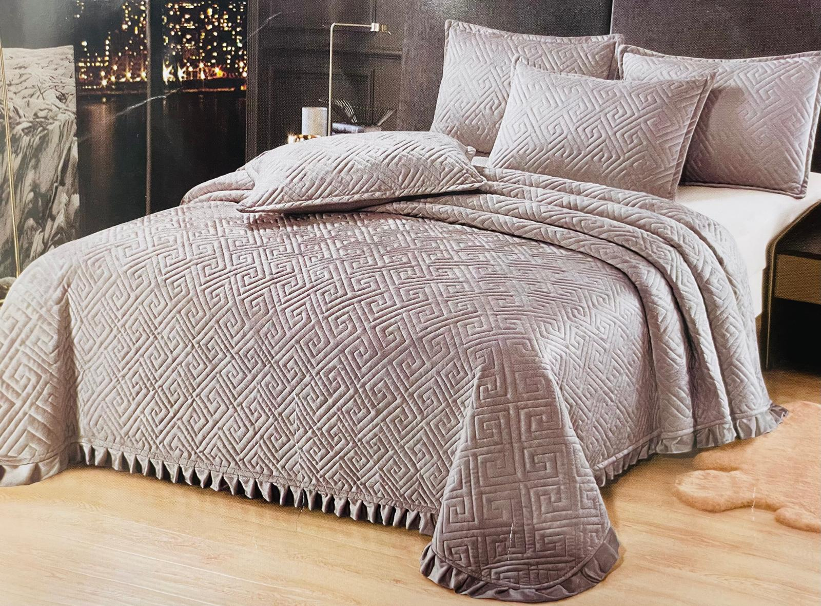 Cuvertura cu volane pat dublu 3 piese, Catifea matlasata, Super Elegant Pucioasa