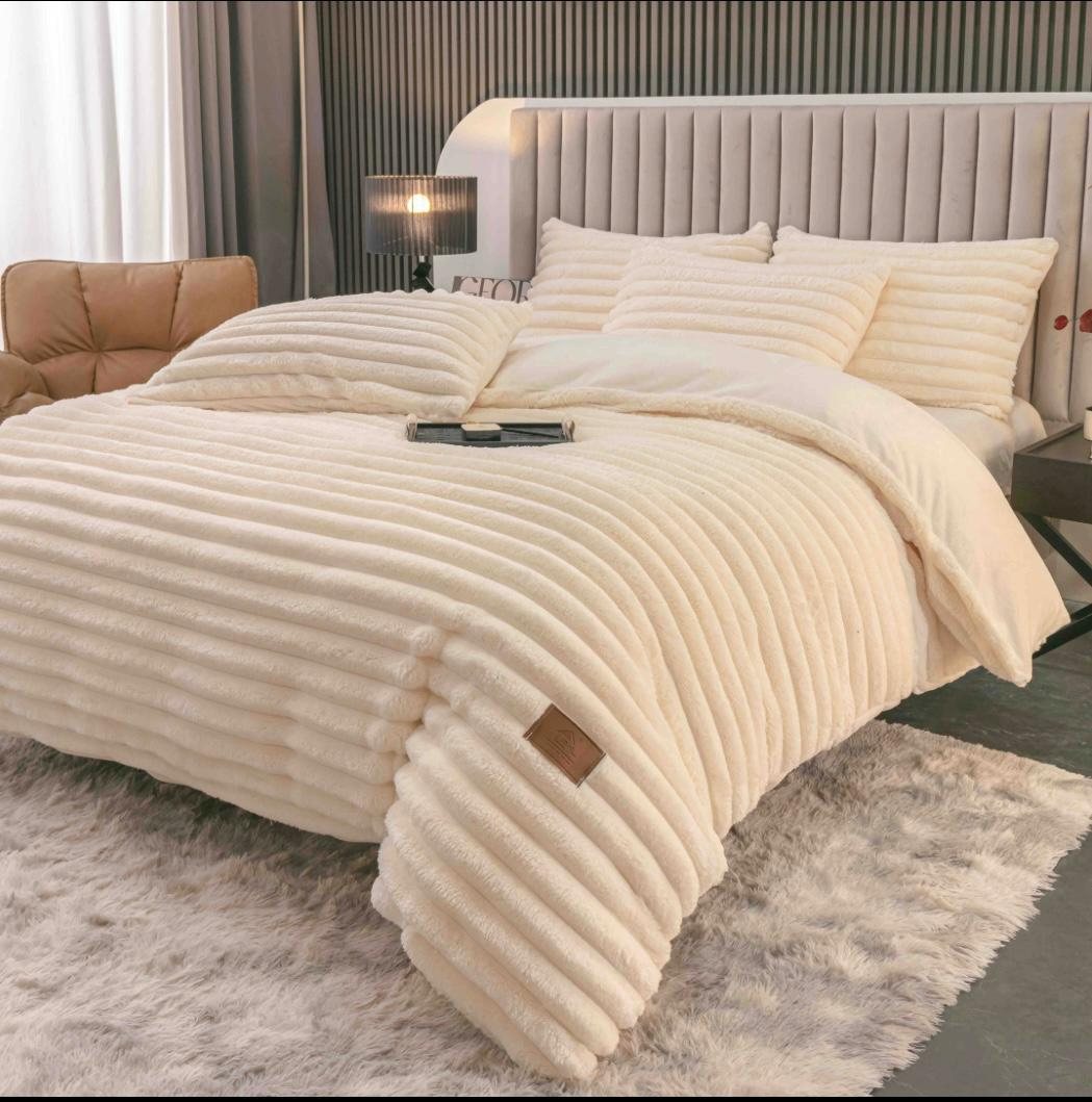 Lenjeria de Pat Cocolino Blanita de Iepure Premium Ivoire ,Pufoasa , Calduroasa si Eleganta, pentru sezonul  rece.