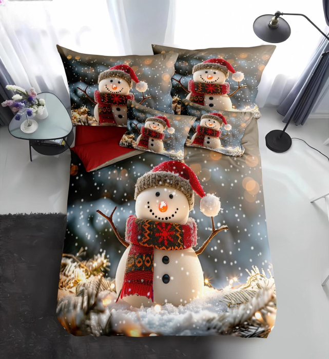 3. Model Vesel de Craciun: Desenele de Craciun cu Mos Craciun ,Om de Zapada ,Globuri si Cadouri , aduc o nota de bucurie si caldura in decorul dormitorului tau, creand o atmosfera festiva.