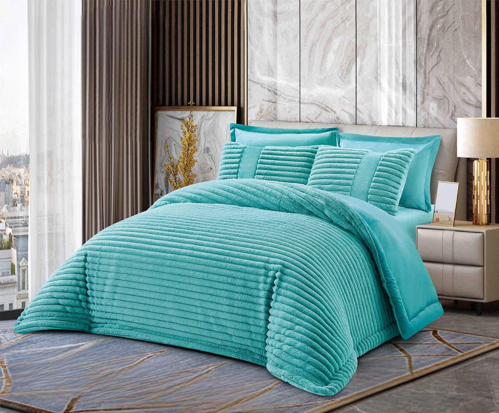 SET COMPLET- PILOTĂ CU BLĂNIȚĂ DE IEPURE + CEARȘAF CATIFEA CU ELASTIC + 4 FEȚE DE PERNĂ, Turcoaz